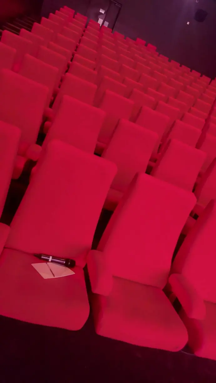 Une mission d'interprétation que l'on qualifierait d'inhabituelle. Nous n'étions pas dans une grande salle de réunion avec des cabines, ni dans une pièce plus petite avec un bidule. Non, cette mission se déroulait... dans une salle de cinéma! De nouveaux paramètres sont entrés en jeu dans la technique d'interprétation. En effet, nous ne vous apprenons rien: dans un cinéma... il fait sombre. Nous vous laissons donc imaginer le système de prise de notes à la lueur non pas de la pleine lune mais de la lampe de poche de notre téléphone. C'est tout de suite beaucoup moins glamour, n'est-ce pas? Cela n'enlève cependant pas le côté profondément enrichissant et humain de cette expérience. Ceux qui connaissent Cassandre pourront dire que le destin aime la taquiner, elle qui fuit les salles de cinéma où les films durent des heures. Cette mission l'a un peu réconciliée avec le septième art, mais ne lui demandez pas d'aller voir le prochain Avatar !